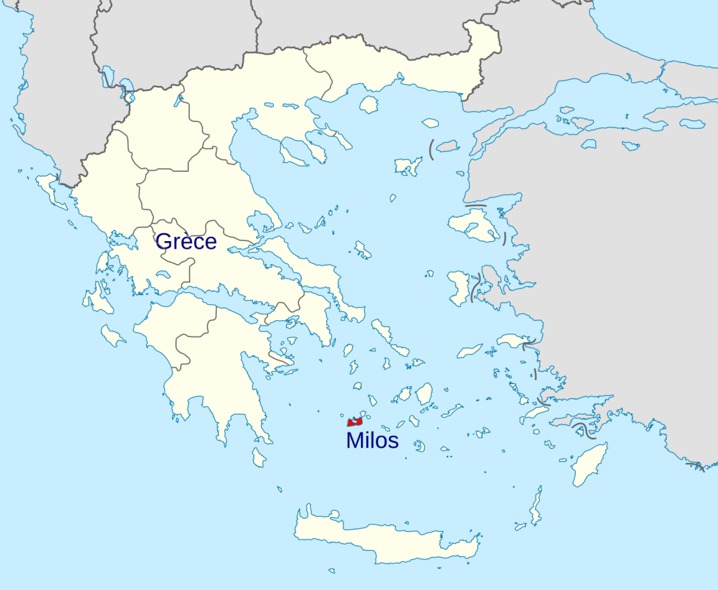 Carte de localisation de l’île de Milos/Greece Location Map (Island of Milos), User:Lencer; CC BY-SA 3.0, Link